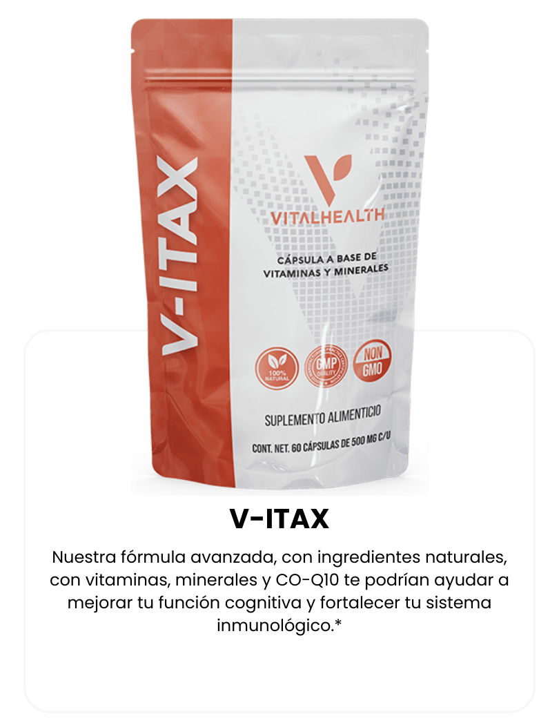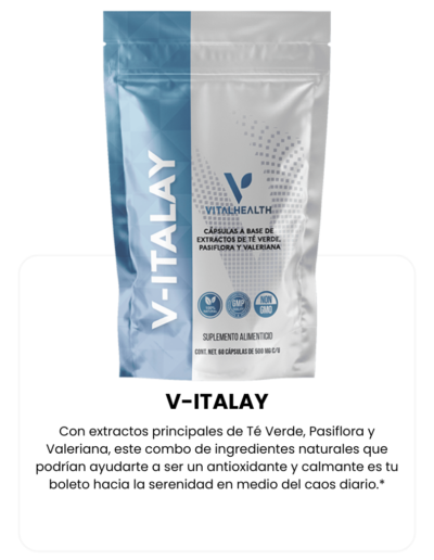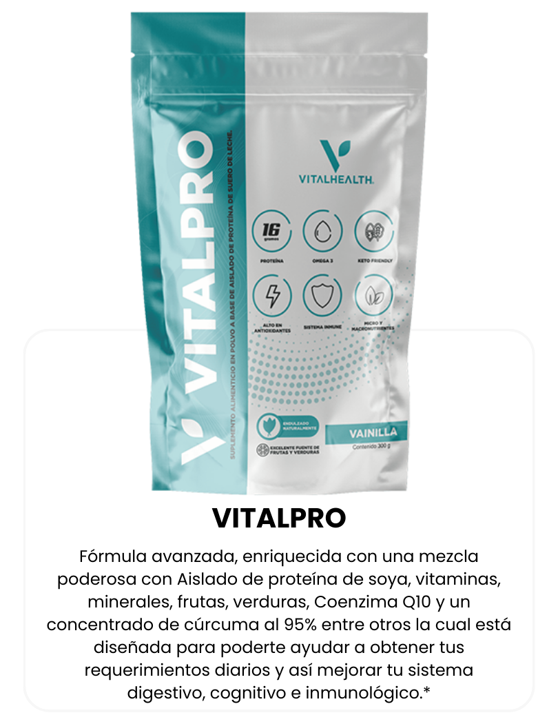 *Los productos mencionados en esta página no son medicamentos y no están destinados a diagnosticar, tratar, curar o prevenir ninguna enfermedad. Es recomendable consultar a su médico antes de consumir cualquier suplemento, especialmente si esta embarazada o padece de alguna enfermedad. Las declaraciones de los productos no han sido evaluadas por la Administración de Alimentos y Medicamentos. Para más información sobre los productos, sus certificaciones y permisos visita la página de Vital Health.